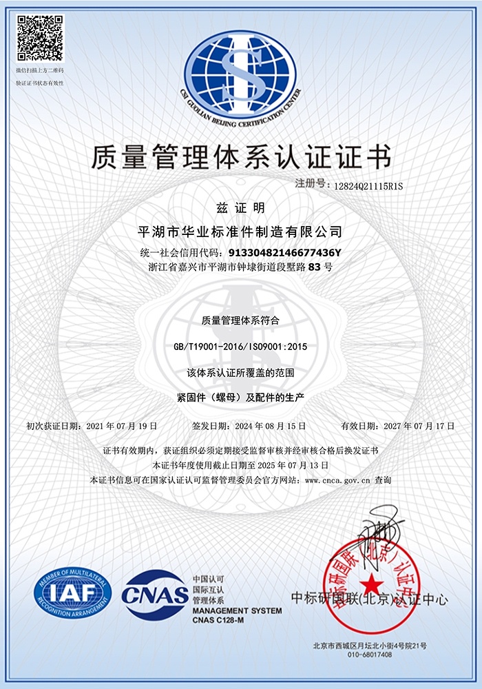 平湖市華業(yè)標(biāo)準(zhǔn)件制造有限公司位于浙江省平湖市經(jīng)濟(jì)開(kāi)發(fā)區(qū)內(nèi),占地面積6600平方米。公司創(chuàng)辦于1994年,三十年來(lái),公司依靠科技,強(qiáng)化管理,注重投入,保持了持續(xù)快速健康發(fā)展。2024年公司產(chǎn)量達(dá)到了5000噸。